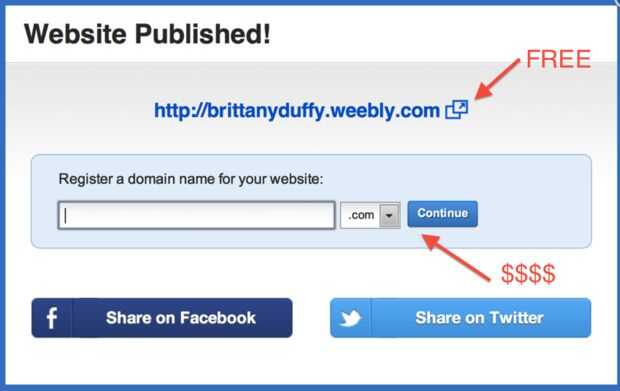 Para ver su sitio de Internet gratis, haga clic en su enlace de subdominio weebly en el cuadro de mensaje "Página web publicada!". Su producto final aparecerá en una nueva pestaña en tu navegador!