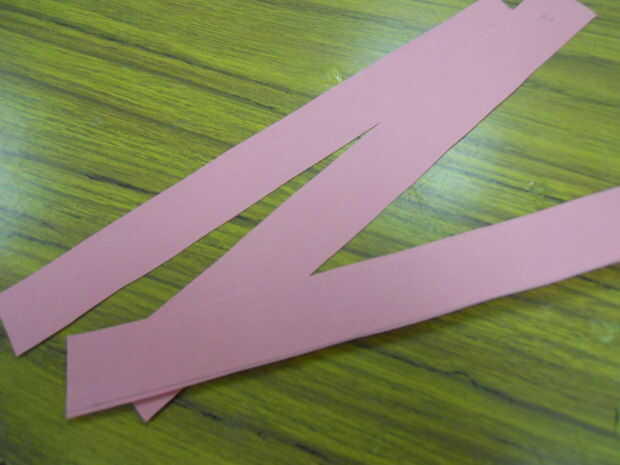 Una de las piezas de papel cortadas en 6 tiras largas de una pulgada (esto puede muy dependiendo del tamaño de ambos el papel).