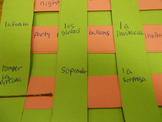 Tomar los anclajes de uno en uno y Deslice cada tira de papel hacia la izquierda. Escriba su palabra y entonces de definición al lado como se ve en la foto. Y Viola! Tiene su ayudante del estudio.