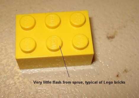 Se fabrican de plástico relativamente densa y muy opaco. Suelen tener muy poco de flash en sus piezas. El plástico más denso se hace también para mejorar la adherencia. Si los ladrillos hacen un clic sostenido cuando se pegan juntos, van a ser más difíciles de separar. (Gracias por el recordatorio, LilPunk32!) Legos haga casi siempre y algunas veces requieren el uso de la herramienta del separador del ladrillo de Lego. La herramienta viene en práctica cuando se trata de placas planas que requieren apalancamiento.