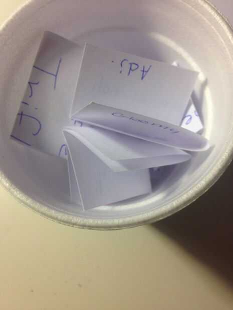 Poner las piezas de papel en la Copa. Por supuesto puedes decorar tu taza (decidí no desde mi taza de espuma de poliestireno)