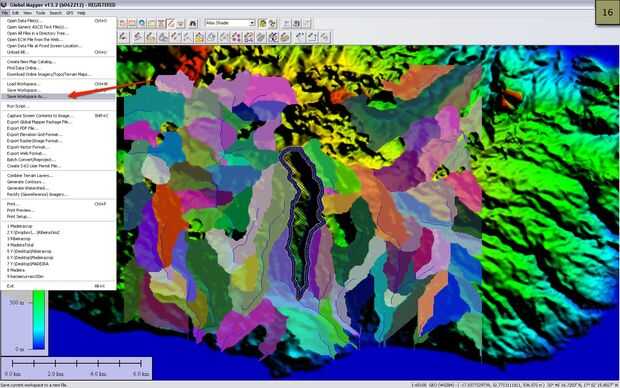 Paso 4: Guardar espacio de trabajo y de la cuenca en análisis - Global Mapper