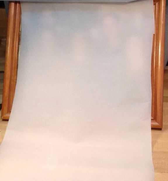 Para hacer el pergamino cyc, sólo arrancar un pedazo de papel pergamino cerca de 1 1/2 veces la altura de su marco de fotos u otro dispositivo de apoyo. Conecte un extremo a su apoyo y cubra suavemente el papel de modo que curvee hacia fuera con el apoyo y en su mesa.