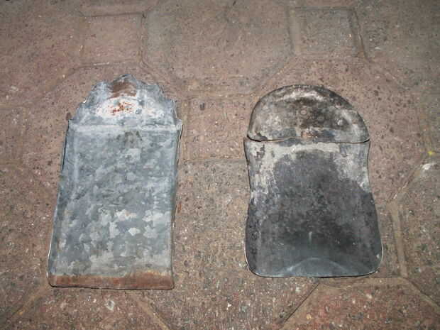 luego cortar un trozo de lata de un panel de la lata y ponerlo en la plantilla de madera y hammerd sobre los bordes.