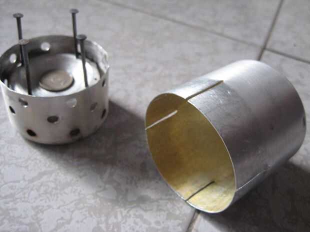 2. Corte los dos pequeños exactamente del mismo tamaño (se trata de la estufa) y caben en uno a... Hacer 8 agujeros pequeños en la parte superior para el fuego y 4 en la parte superior de las uñas. Haga algunos agujeros en el medio para el relleno. En el exterior es la parte superior uno!!!!!! no olvides que... mejor trabaja de esa manera...