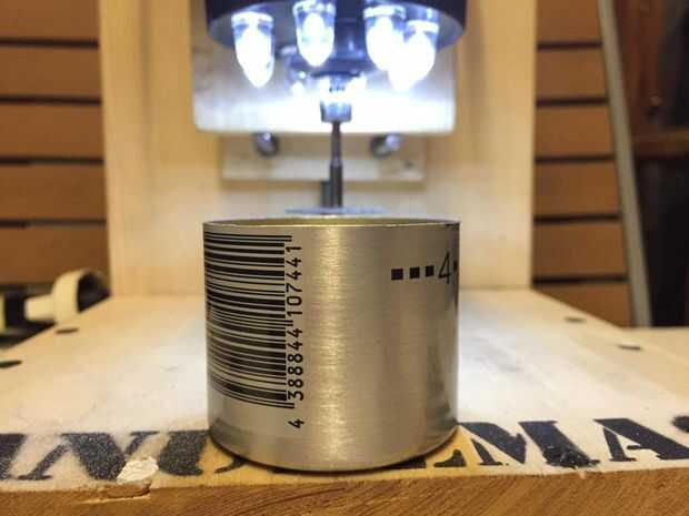 De esta manera, basta con girar la lata empujando la parte plana sobre la mesa del taladro, mientras que la rueda de corte hará el trabajo. Este es el método más simple para hacer cortes rectos (foto #5).