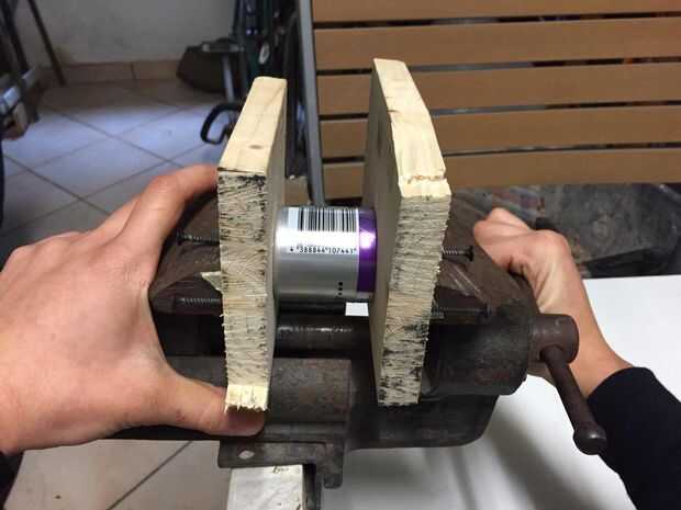 Utilizar la prensa para empujar la pieza de 3cm dentro de los 4, 5 cm uno (obviamente con las muescas del combustible en la parte inferior).