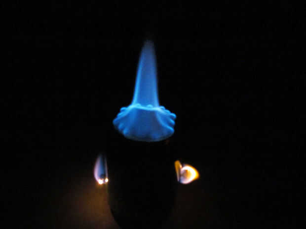 No sé cuánto tiempo tomaría para cebar con sólo las llamas a los lados. He colaborado con mi antorcha después de aproximadamente 1 minuto. Mi sugerencia es no hacerlo de titanio. Es muy difícil trabajar con él.