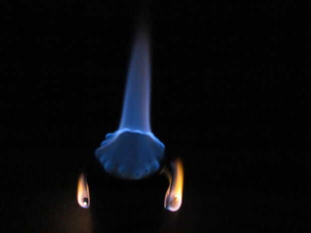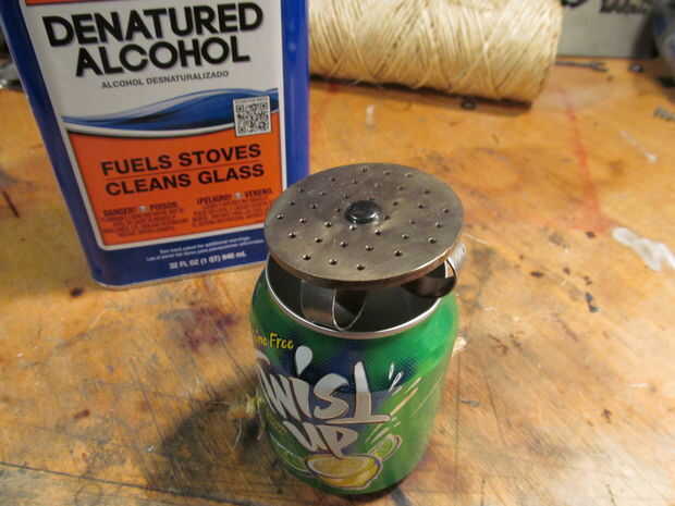 Vierta alcohol desnaturalizado en la lata. Coloque un poco combustible en los nudos y asegúrese que la mecha toda está saturada. Encender las mechas. Una vez que la estufa se caliente bastante la llama va a salir en la parte superior.