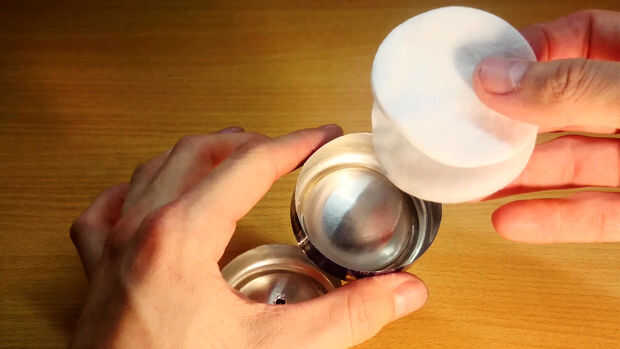 Hacer una parte inferior de la estufa de otra lata. La altura de esta parte es de 20 mm. Colocar algunos cojines de algodón en su interior.