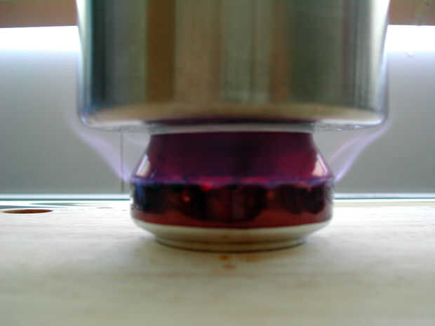 3. en unos pocos segundos, aparece un anillo de llama azul donde se encuentran las secciones superior e inferior.