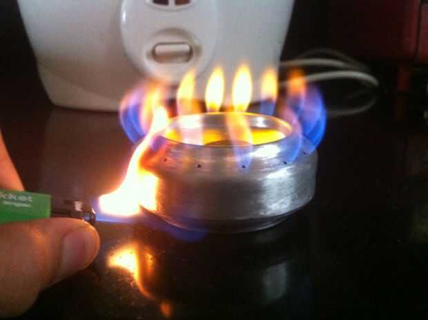 set 4.) el alcohol alrededor de la estufa en el fuego.