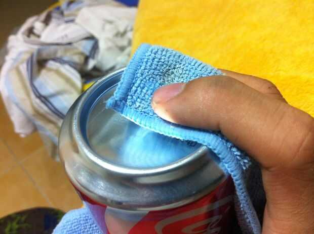 Limpie la lata entera, aclarándolo con agua. Usted no querría impurezas para mezclar con el alcohol. Las impurezas de la mezcla con alcohol degradará el rendimiento de la estufa. Tras el enjuague con agua secar con un paño.