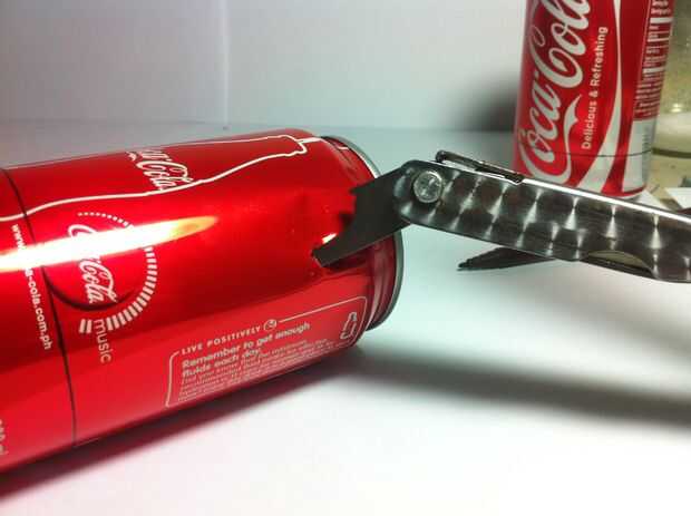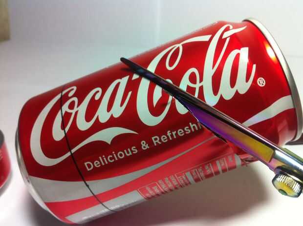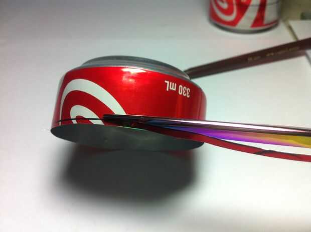 Con un par de latas de refresco, corte las secciones de la parte inferior de cada uno. Aluminio de lata de soda es tan delgada que puede cortar con unas tijeras. Dejando una soda puede inferior como para la parte inferior de la mitad de mi tanque de