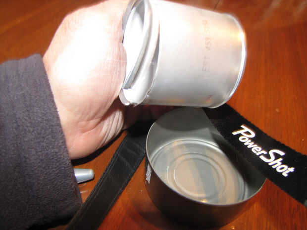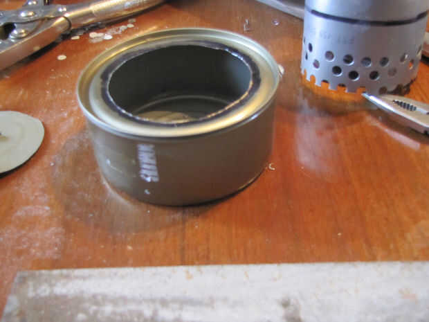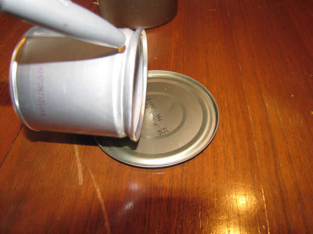 entonces establecer la lata de salchicha boca abajo en la tapa de atún (lo siento perdí el pic para que)