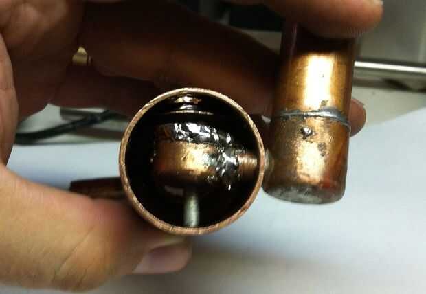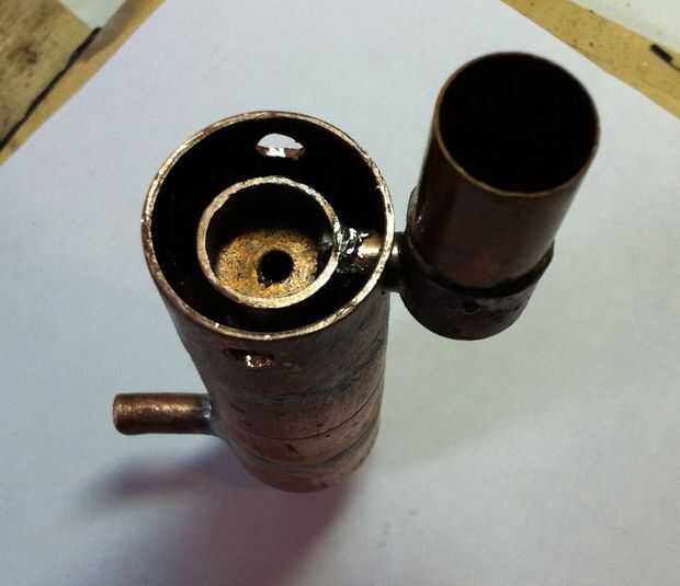 5. Coloque el tubo de combustible en caldera y la parte inferior de la soldadura fea de la estufa.