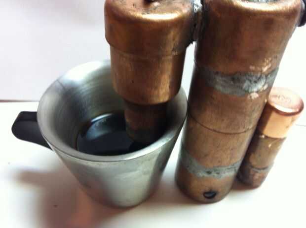 Mantenga la cafetera por la coladora y levantarla. Utilizar un mechero calentar la estufa desde el fondo hasta que prenda (tarda unos 10 seg.)