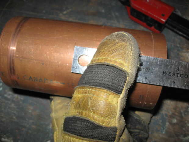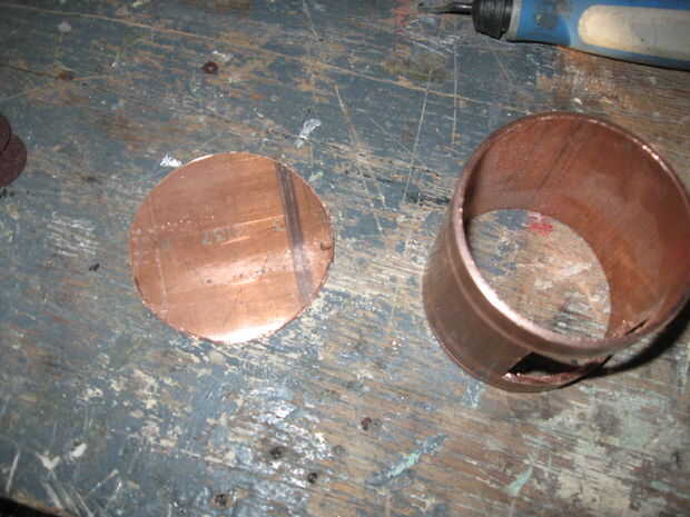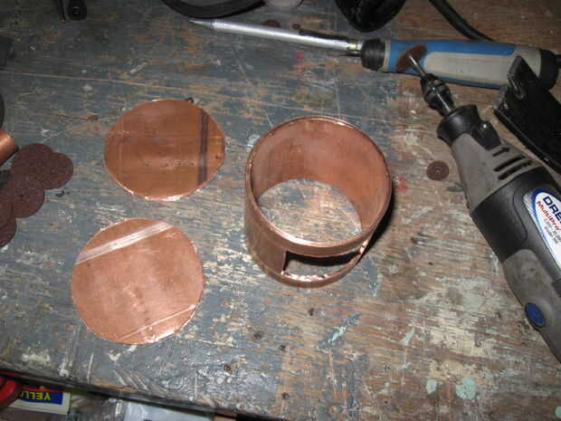 Corte una sección de aproximadamente el diámetro del tubo de la caja del quemador y luego otra sección que es el diámetro de la tubería para las tapas superior e inferior.