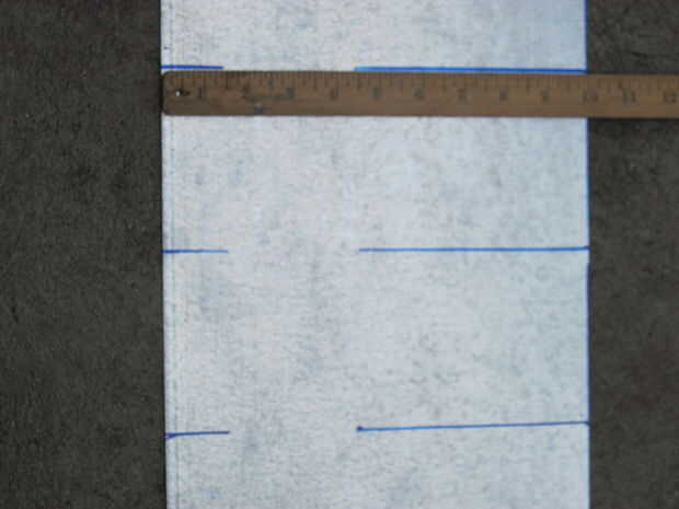 2. a lo largo de ambos bordes largos, haga una marca cada 4". Cuando haya terminado, cada lado tiene 6 marcas.