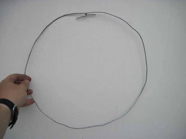 2. hacer un lazo de alambre de 42". Fije sin apretar los extremos juntos doblando la última pulgada de cada extremo.