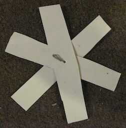 2. colocar las piezas encima de la otra y usar el martillo y clavo para hacer un agujero a través de los centros de las tres piezas.