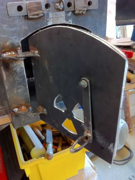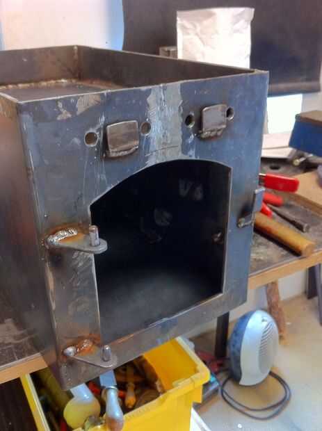 Originalmente planeado para una ventana en la puerta pero decidió que era demasiado complicado para este cuadro así que me fui para un ancho en la parte delantera. Este no ha sido un problema realmente como si quieres ver las llamas puede simplemente dejar la puerta abierta y todavía quemaduras bastante bien como el.