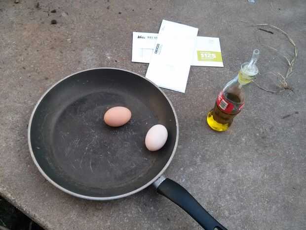 Añadir unas gotas de aceite y romper algunos huevos. Las gallinas que los huevos parecen muy confundidas acerca de lo que estoy haciendo a sus huevos.