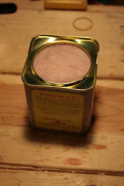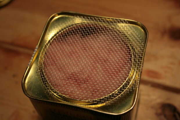 Paso 5: Presione esta pantalla hacia abajo sobre la fibra de vidrio y bajo los bordes de la abertura de la lata. Asegúrese de utilizar únicamente las piezas de pantalla de aluminio! Invierta la lata y golpear la parte superior de la lata abajo inteligentemente todo dentro y darle un aspecto suave a la zona del quemador.