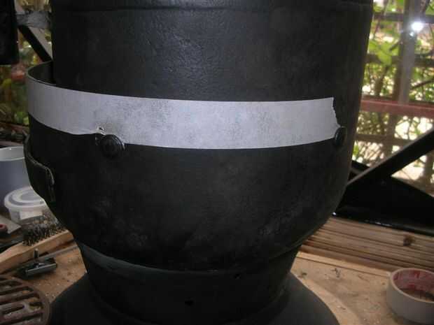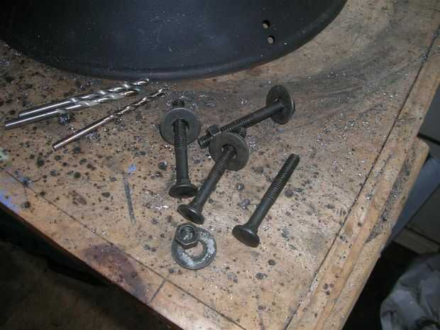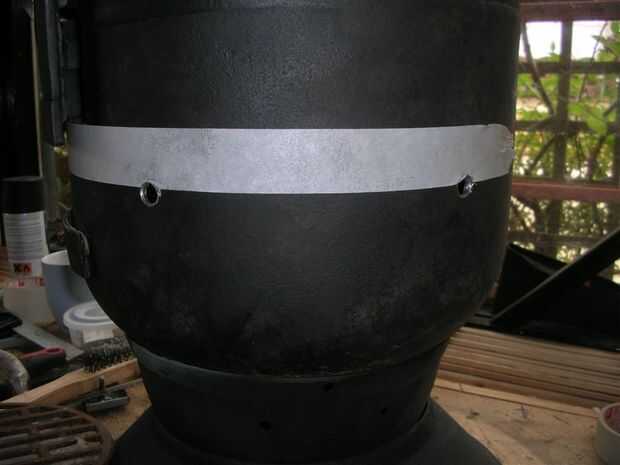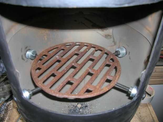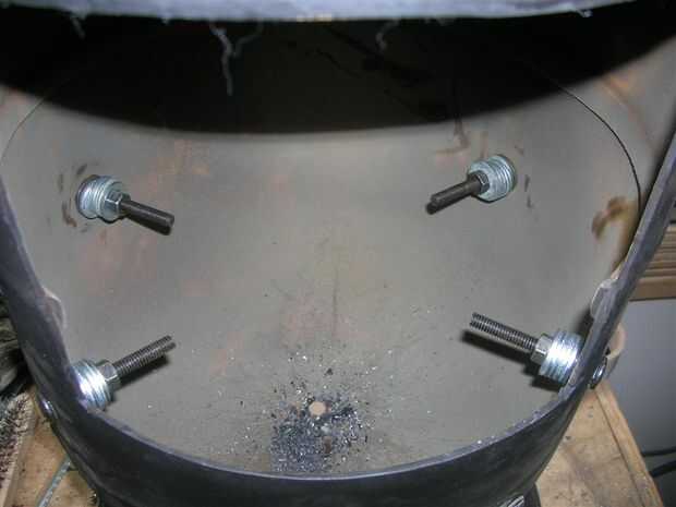 Perfore unos agujeros alrededor y colocar pernos largos para apoyar la parrilla de la estufa interna.