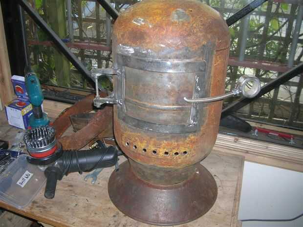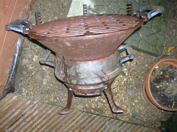 Usé mi vieja fundición barbacoa que era más un elemento decorativo en mi jardín para las macetas. Después de tomar aparte servirá como la nueva base de la estufa.