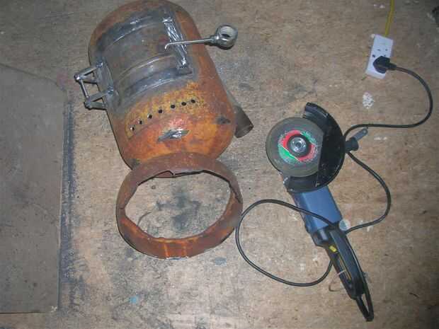 Corte la base de apoyo del cilindro de gas con un molinillo así que podría unir algo más decorativo y deshacerme de la mirada de cilindro de gas.