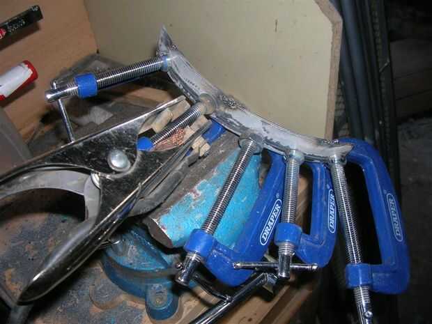 Utilicé el mismo método, asegurando la bisagra en el lugar correcto y después soldado con autógena lo.
