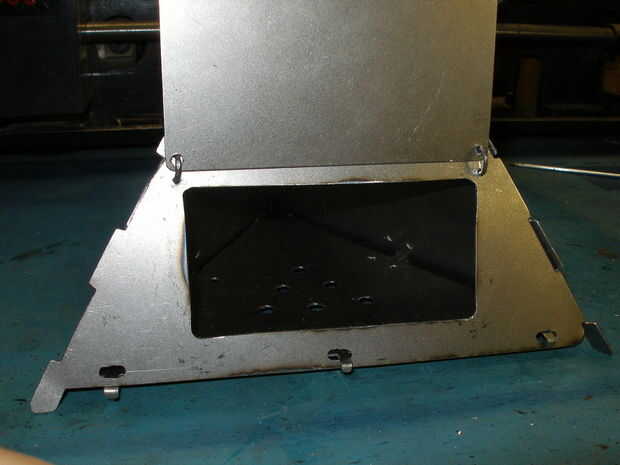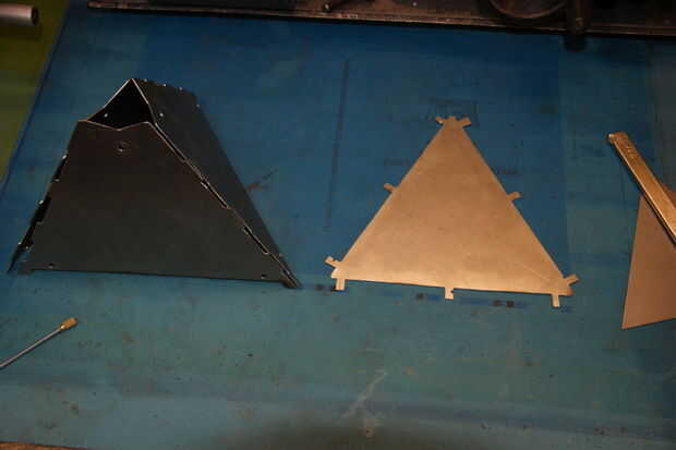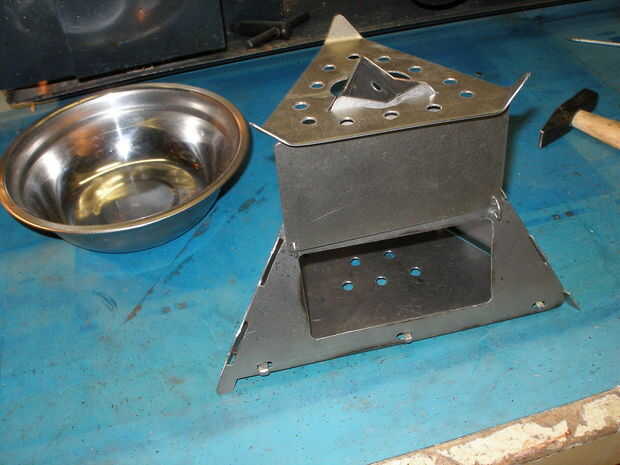 En el triángulo 4 - inferior parte - corté conexión puntos, estufa de la puerta y hacen agujeros para el escape de calor. En el pequeño triángulo cortado medio apertura una esquinas dobladas.  Parte de inferior del triángulo y triángulo pequeño están para hacer todo este seguro y firmemente juntos.