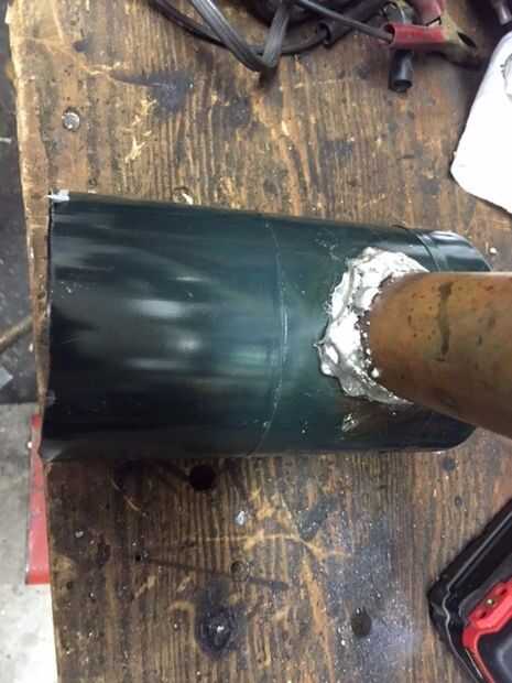 Una vez que ha cortado y limpiar el agujero para la chimenea, limpié la sección del tubo de cobre con flujo. entonces estás listo para solded usando soldadura de la lata. La razón que utilizan estaño es porque tiene un mayor punto de fusión de soldadura de aleación de plomo regular. El estaño no se derrita si haces este paso correctamente. Usted debe asegurarse de que el tubo es más ancho que el agujero para que la lata no está expuesta a demasiado calor. Si lyer suficiente estaño en alrededor de la pipa de cobre ist será seguro y listo para usar.