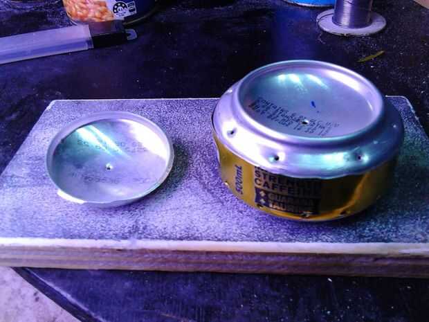 Hacer una pequeña lectura sobre otras páginas de estufa centavo para obtener tamaños de jet, he probado pequeños agujeros con una aguja, dos botes para hacer herméticos, pero han vuelto a un jet de tamaño más grande de ~0.8mm y 8-16 jets.