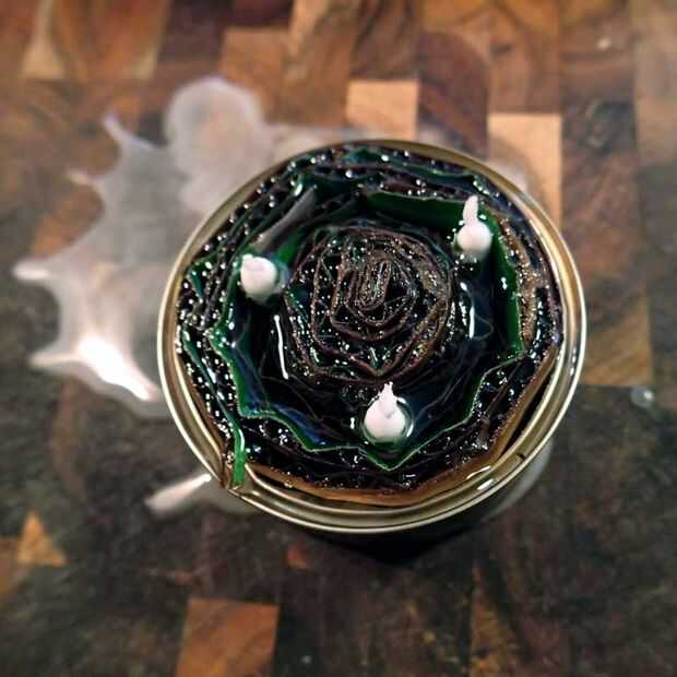 2. Vierta la cera fundida sobre el cartón, empapando todos rollos, pero no colmes la lata.