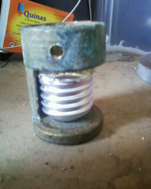 Para montar lo justo quitar todos vidrio de socket de la lámpara excepto la parte inferior de vidrio negro cual es el contacto, poner en la pieza de la estufa y asegúrelo con alambre. Para usarlo sólo hay que poner la olla en la estufa, llenan la conexión de la lámpara de alcohol y puesta en marcha.