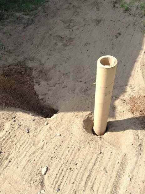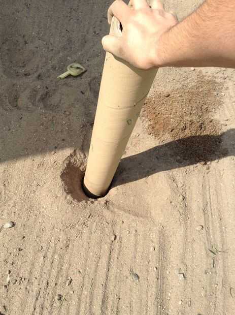 Easy step!  Tomar el tubo usted tiene y colocarlo en el extremo de la chimenea de su túnel.  Asegúrese de que está parado derecho para arriba!  Esto evitará que la arena que se derrumban en y arruinando su chimenea.   Si se enamora de arena un poco, no te preocupes, que se encargará de más adelante.  Muy bien, en el siguiente paso!  :-)