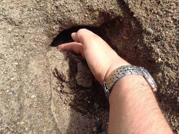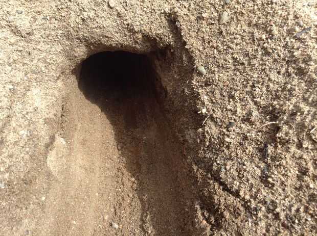 Tiempo de limpieza!  Puede utilizar una pala o utilizar la mano, pero el punto principal es simplemente quitar como mucho polvo de la cámara como sea posible.  Alcanza en de la parte delantera de la arena del túnel y tire hacia fuera.  Una vez esté satisfecho con su resultado, es hora de probarlo!  : D