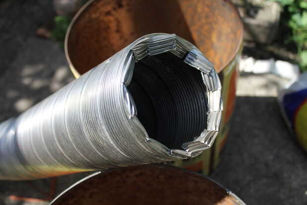 Corte de la Plaza de tubo flexible, una mezcla de recortes de sierra para metales y hojalata funciona bien.
