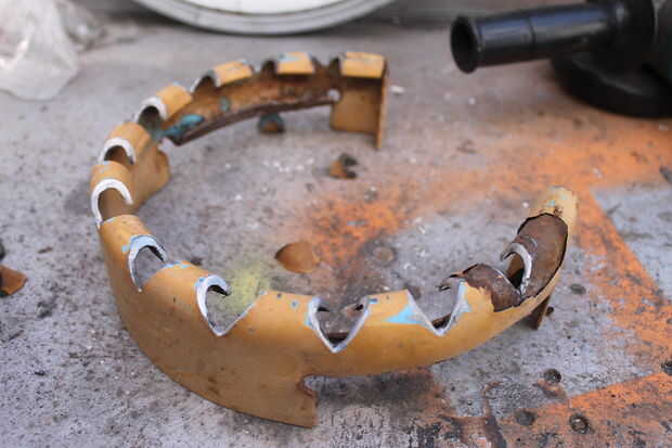 Soy un gran FAN de la utilización de la parte superior de una botella de gas como un resto de olla. Yo simplemente cortar por lo que hubo 20mm entre la parte superior de la chimenea y el fondo de la cacerola. Y luego corté un montón de cortes para que pudieran fluir el aire y el fuego agradable e incluso alrededor de la bandeja.