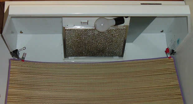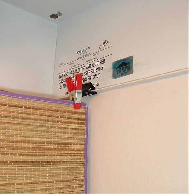 Esto es donde entra ese maravillosa brida en la campana de ventilación. Los detalles exactos dependerán de su específicas abrazaderas cortina (y brida) - he establecido como mina funciona en las notas de la imagen a continuación.
