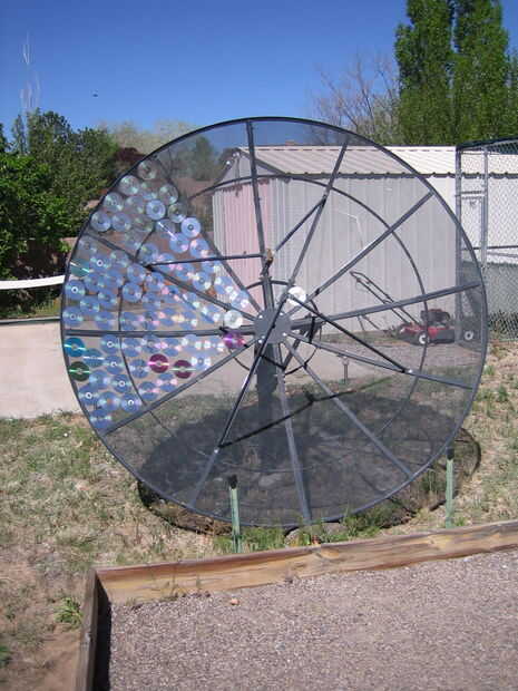Utiliza una combinación de 1/8 "X 3/4" arandelas de defensa y #4 por 3/8 "tornillos para la mayor parte del CD y un tubo de pegamento de silicona sobrante para unir las 2 filas exteriores. Si tienes un plato de fibra de vidrio, simplemente utilizas el adhesivo de silicona para todos. El CD fueron procurado de una escuela secundaria. Eran obsoletos. Los discos de sólo lecturas previo parecen durar más tiempo y producir reflexión un poco más que los discos grabables.