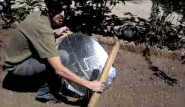 Este principo se llama concentración parabólica de radiación solar. Significa que lo vamos a hacer es concentrar las radiación solar que cae en toda la antena a un mismo punto, creando un foco puede alcanzar altas temperaturas en un corto tiempo...