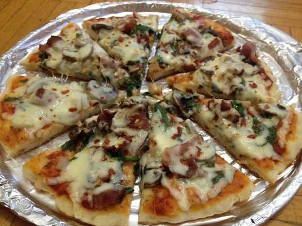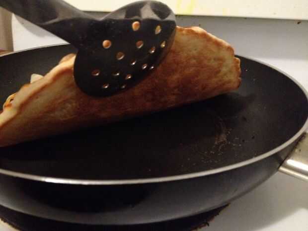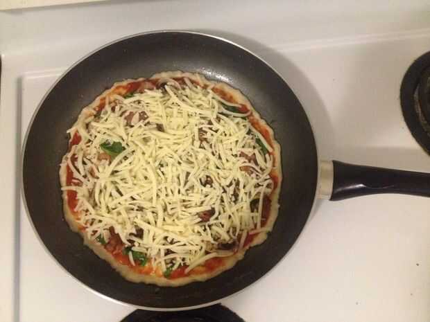 Una vez cocidas, retire la sartén del fuego. El pan a 45 grados de inclinación, la pizza se deslizará fácilmente a la placa.