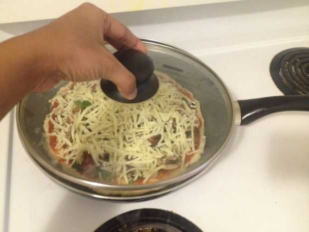Después de 8 minutos, abra la tapa y Compruebe la parte superior y la base de la pizza.
