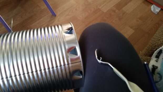 Esto fue super duro y tomó mucho tiempo. Primero es necesario medir el quemador buddy para asegurarse de que usted puede caber a través de la abertura. Generalmente sólo poner el quemador en una zona concreta y poner el vagabundo sobre la parte superior de la estufa, pero necesita una ventana para ver cómo su quemador es carenado. Después de esto tienes que utilizar las herramientas de corte de metal para cortar la Plaza. Algunas personas intentan cortar sólo dos lados y dejar la pieza como una puerta. Yo no era suficientemente capacitado ni fueron mis herramientas impresionantes para realizar esta tarea, así que solo corte el orificio. Toma un poco de tiempo para hacer bien los cortes y obtener los pedazos quitados, pero simplemente lejos de la arena o alicate para corregir los errores al final. Después de este uso el orificio metálico dos de golpe a golpe los agujeros en la lata. Se utilizará para la manija. Corte de aproximadamente un pie de alambre a utilizar. Alicate para hacer un pequeño lazo en el final del alambre. Hilo de rosca a través de, por lo que es el asa de metal en el interior de la can. El extremo a través de otro lazo del hilo de rosca y utilice las pinzas para hacer una parada en el otro extremo haciendo un mango metálico para su horno.