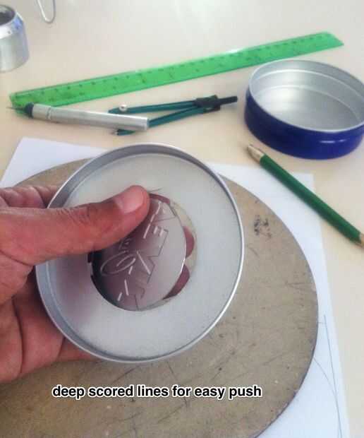 1 obtener el centro de Nivea frasco., usando la brújula-dibujar una guía circular para cortar el orificio equivalente a Pepsi Slim puede diámetro.