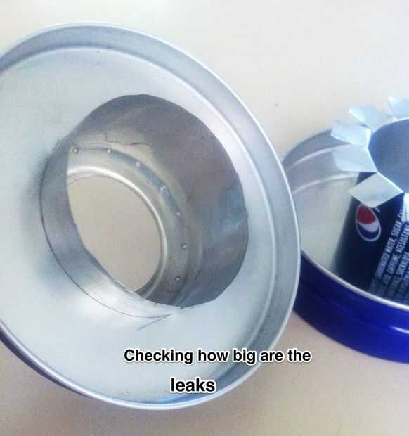 8 utilizar cinta de aluminio para sellar la cannister(nivea can) combustible. Usé cinta de aluminio en lugar de sellado permanentemente con epoxi., por lo que yo puedo reparar fácilmente si ocurre problemas., o cambiar la mecha fácilmente sin dañar toda la estufa.
