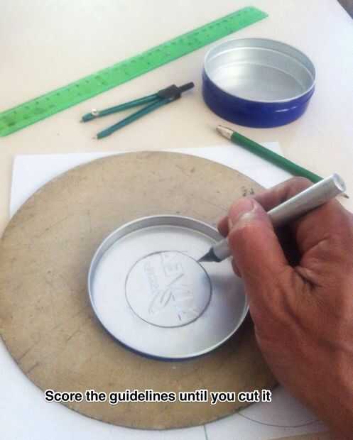 2 anotar a la guía patrón circular que solo con el cuchillo del Exacto o cuchilla. Hasta que corte a través.